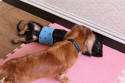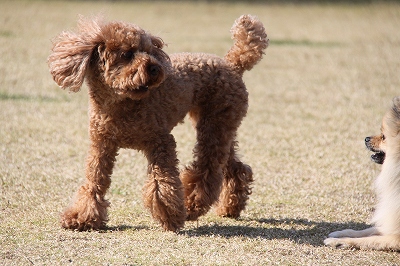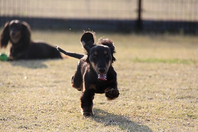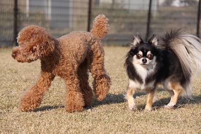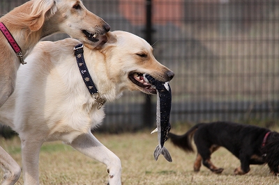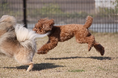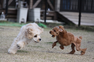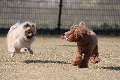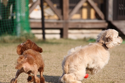 そしておもちゃを追いかけてるフランちゃんと走りたいココアちゃん