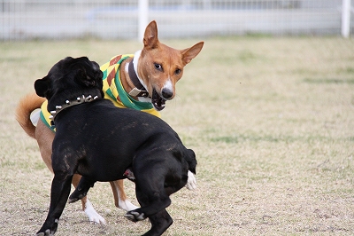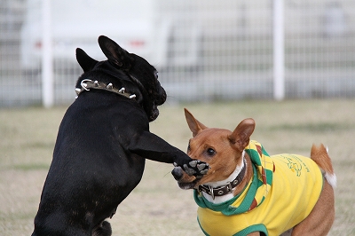 立ち上がって戯れていたロディー君、この後ビックリするような見事なバクテンをしましたよ