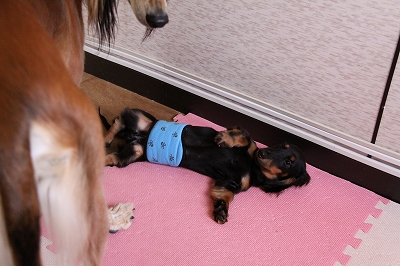 人見知りとお聞きしましたが、お母さんたちが帰られてすぐに「ラブちゃん。」って言って私が近寄ったらお腹をだしてごろ~んしてシッポフリフリしてくれましたよ