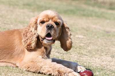 クイール君、ルンルンでボールくわえてますがもうボロボロですよ~