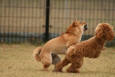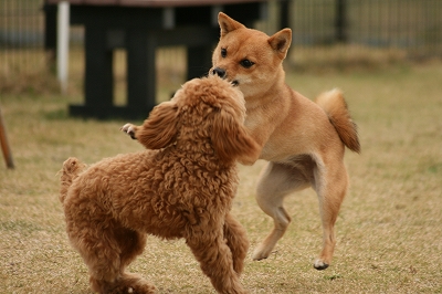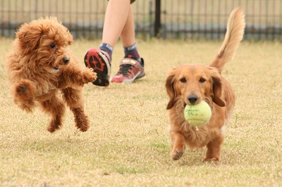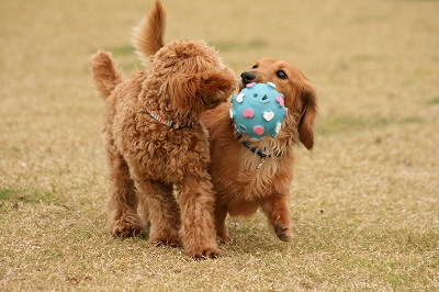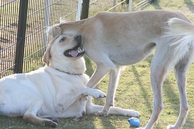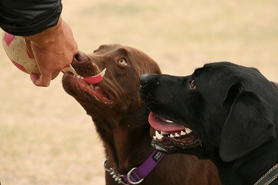 ねねさん、マッシュ君の体高を軽くジャンプしてボール貰ってます(笑)