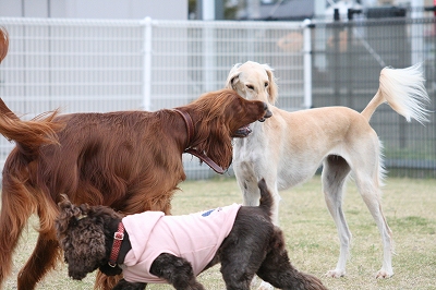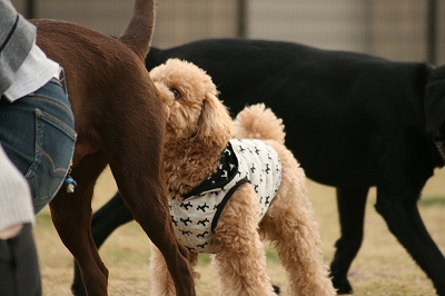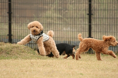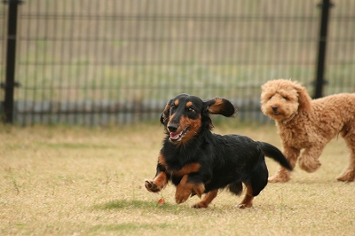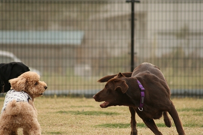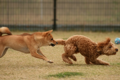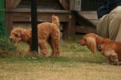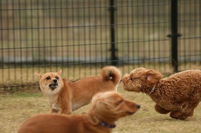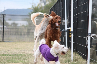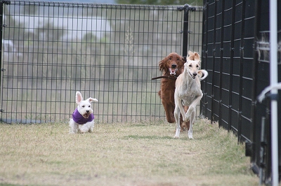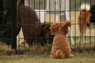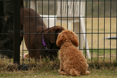 ダリアとのフェンス走りも絶好調ですが、昨日から小型犬エリアからフリーエリアに脱出する技を覚えたのでいけれないように処置しました(笑)