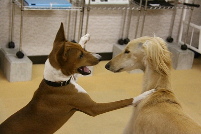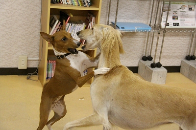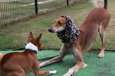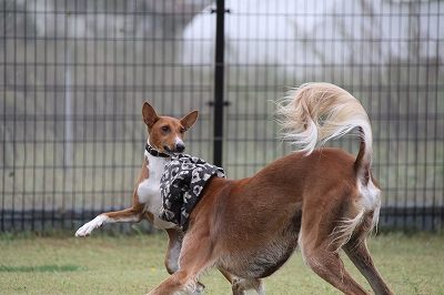 月ちゃんが来てくれたときにはすでにお天気が悪くて走ってるところは撮れませんでしたが、ダリアと楽しげに追いかけっ子をしていました