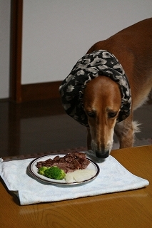 「コレ僕のですか?」と一切れくわえてぽ~い!と放り投げて遊んでたんですけど・・・けど最終的には食べました
