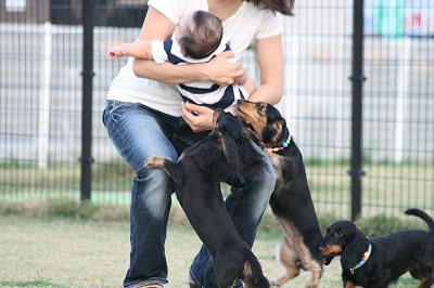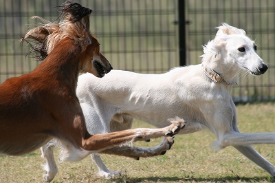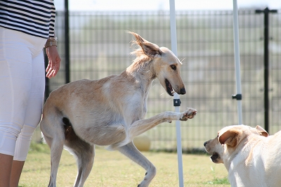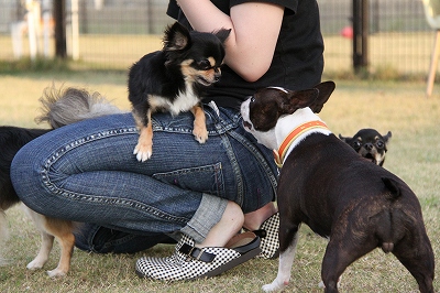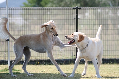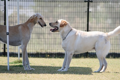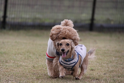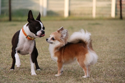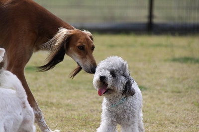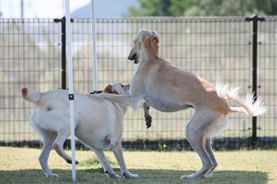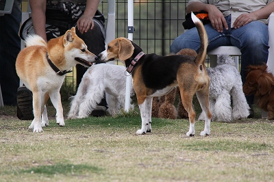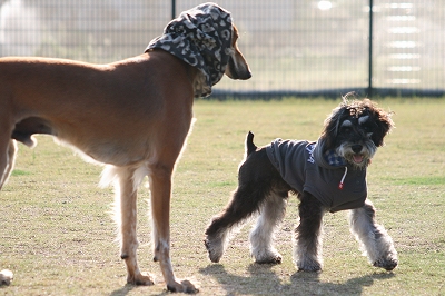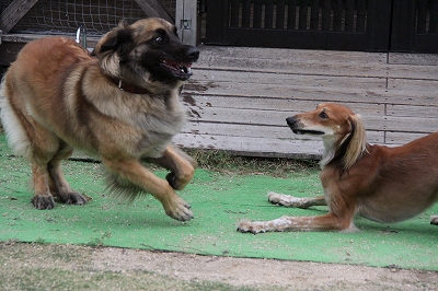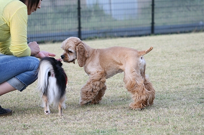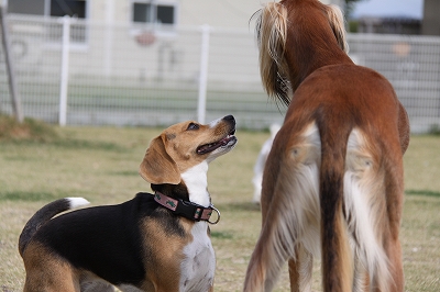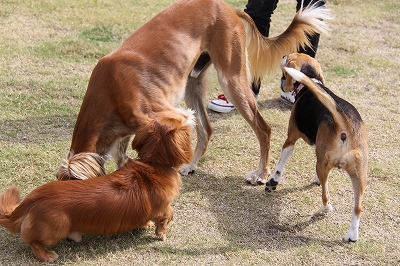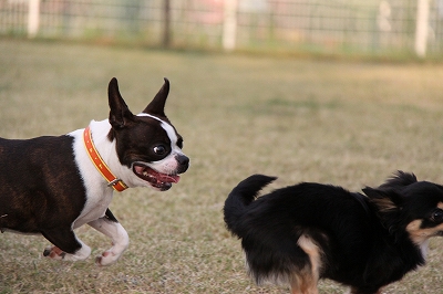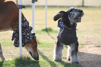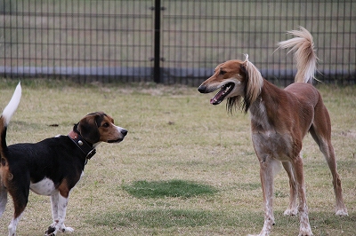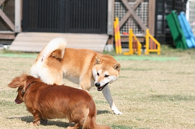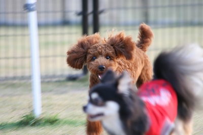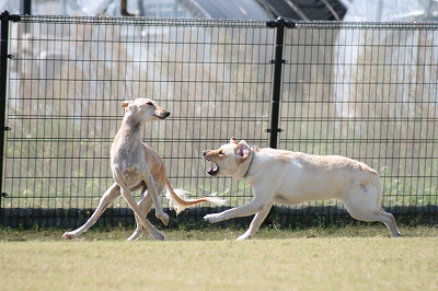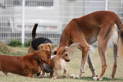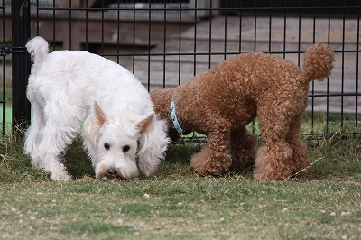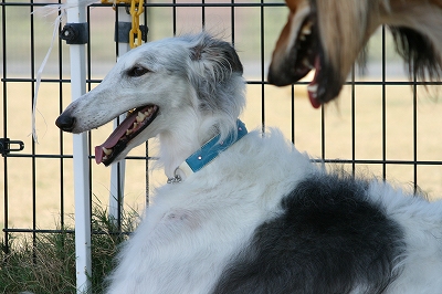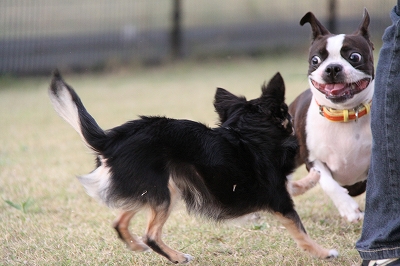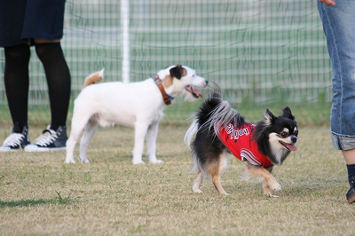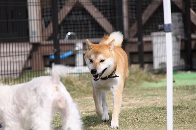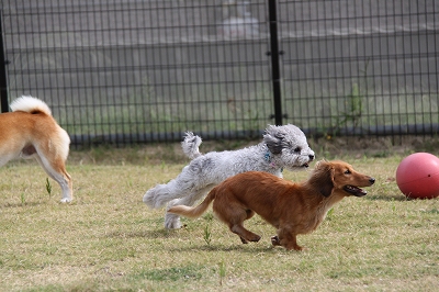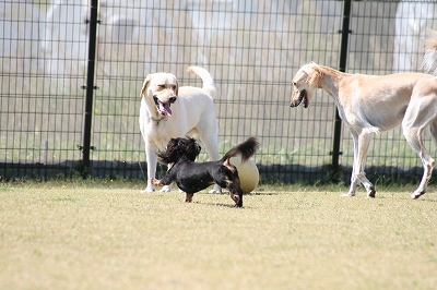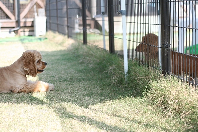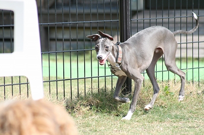 「僕もそっちいかせて~ん。」っと言ってるようでそうではなく、はじめ一緒のエリアにいったんですが、怖がってしまったので小型犬の方に行きました