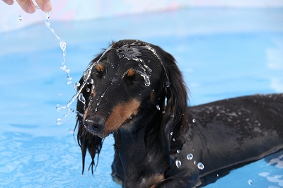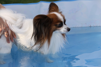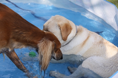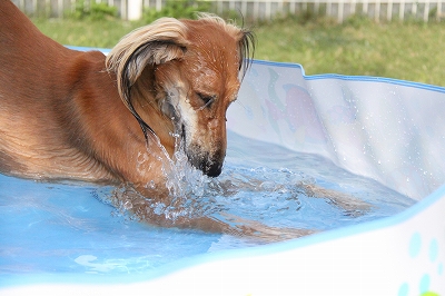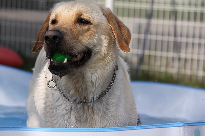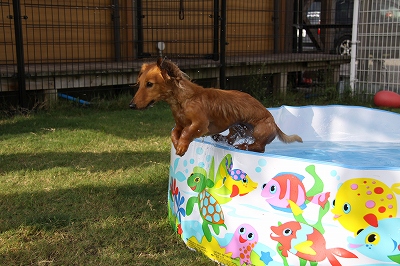 リク君、今年最期の川遊びに挑むべくプールで水慣れ