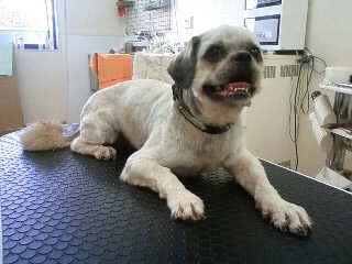 そしてプーちゃん、頭と体の色が変わってもいいって言われてたので、飼主さんと私が一緒につるリカットにしましたが、時間が無いので足の先っぽは刈ってないという斬新なカットです