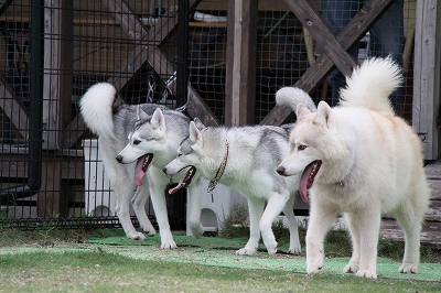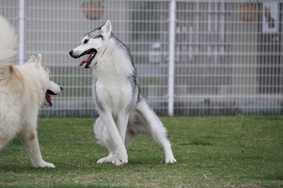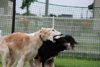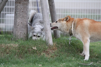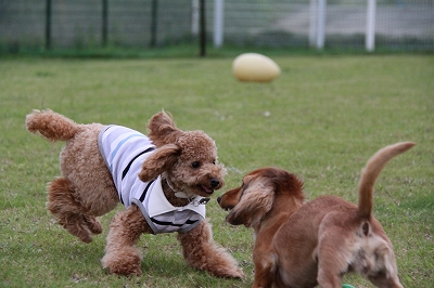 やっぱりそらとうららは平気なようでうららがボールを追うと行きたそうにしてました