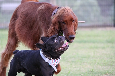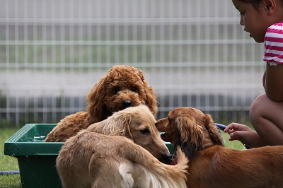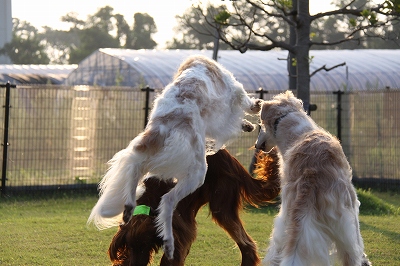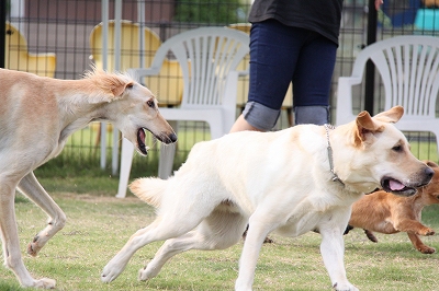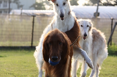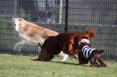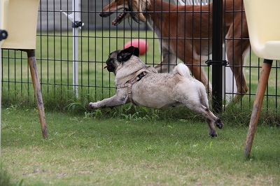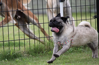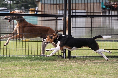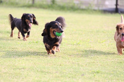 今日は暑かったのでグリちゃん達にはきついだろうなと、すずしい朝の6時過ぎからたっぷり遊んで、カンカン照りの時はオシッコ程度にチョコチョコ出て、皆さんが帰られた後、夕方ガッツリランに出ました