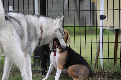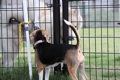 お豆さん、いつものビビリンを発揮してますが午後にはなれて他の子と一緒のスペースに一緒にいる事ができましたよ