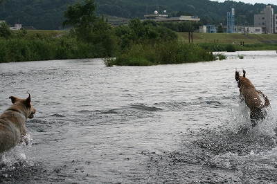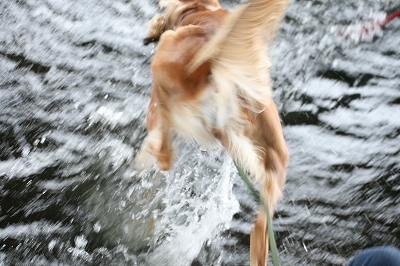 っと急に飛び込んで一気に川から上がっていったダリア・・・