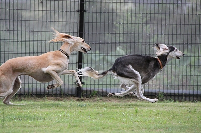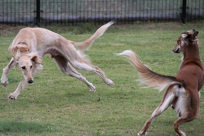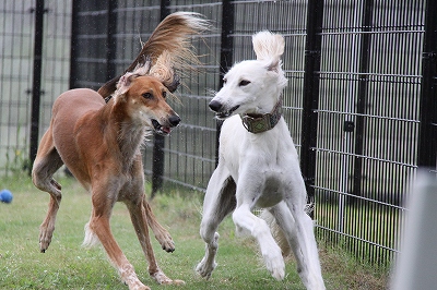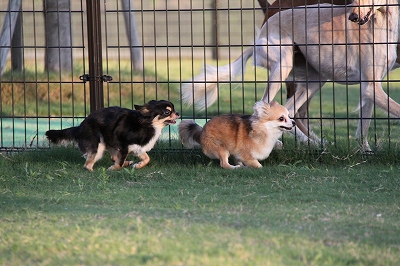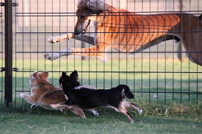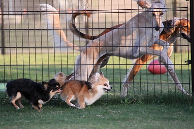 今日も「ヒャンヒャンヒャン。」っていいながらねねたちとフェンス走り~