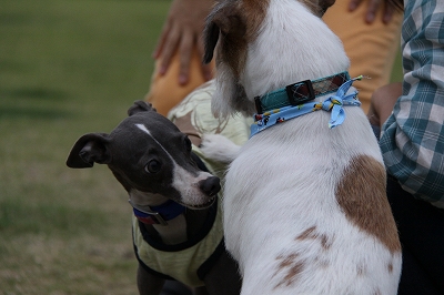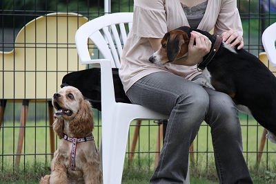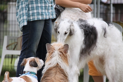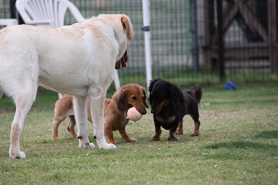 さあさあ、今日もロディー君をうちのでっかい2匹が待ち構えております