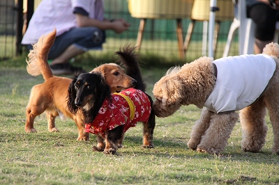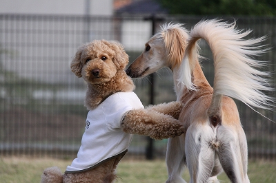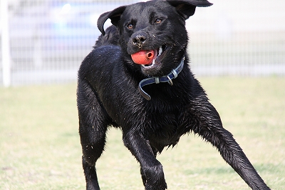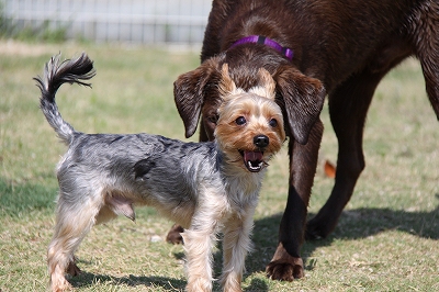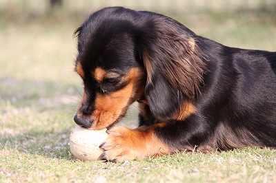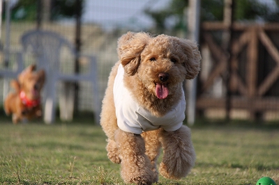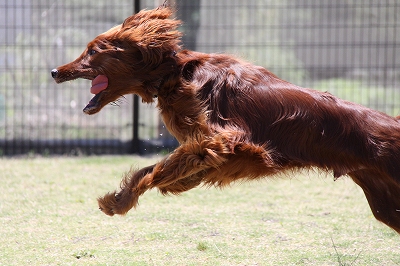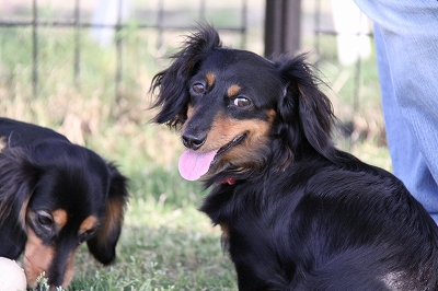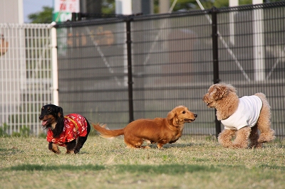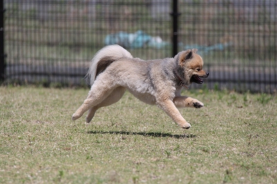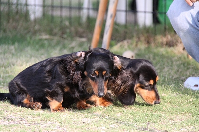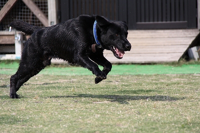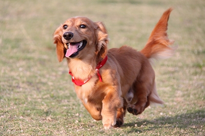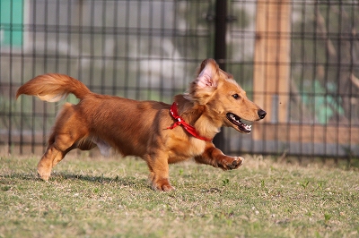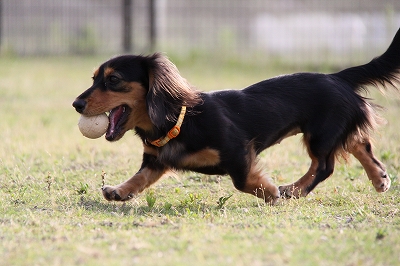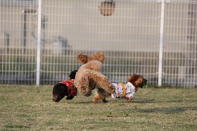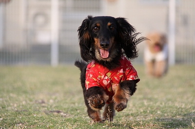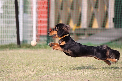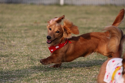 そんなダックス2匹を追いかけるパン君!飛んでおります