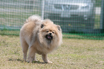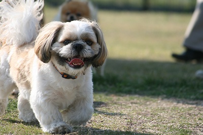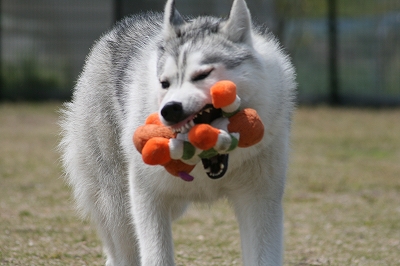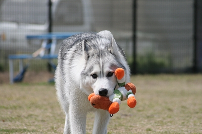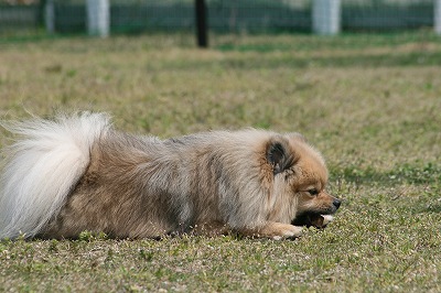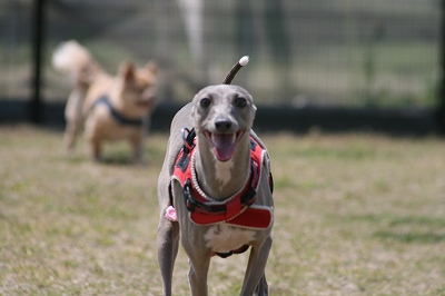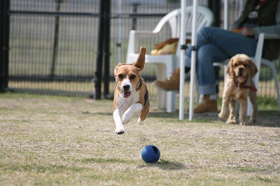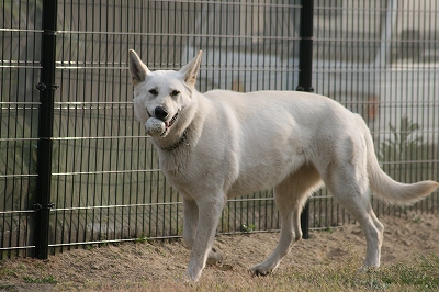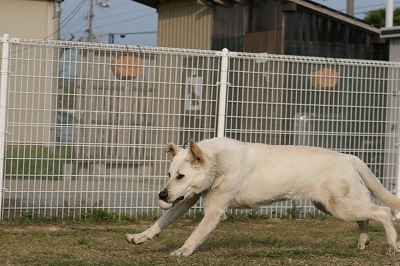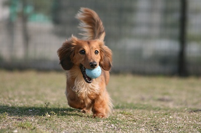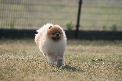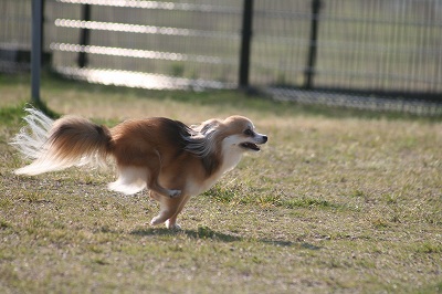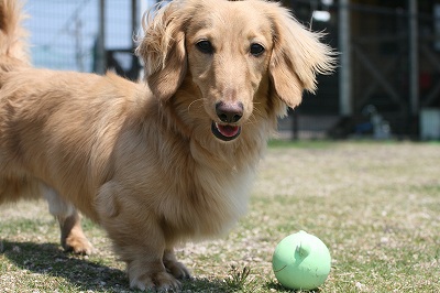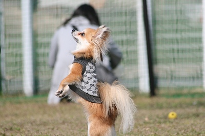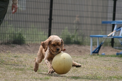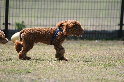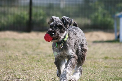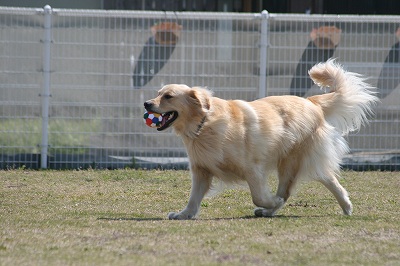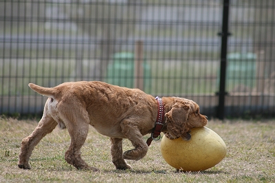 プリンちゃん、元気いっぱいにボールを追いかけていました
