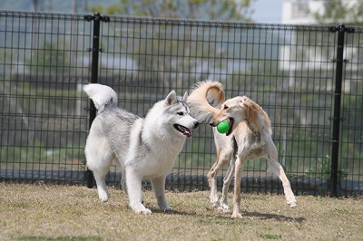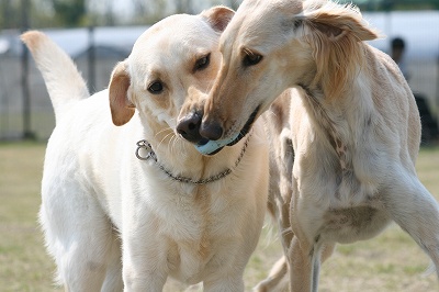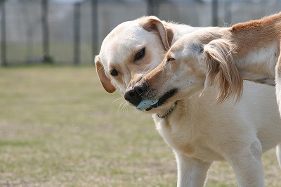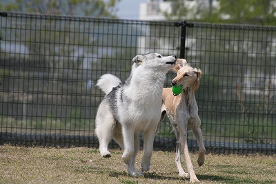 カン太君と壮絶なボールの取り合いです