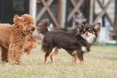 わんちゃんがいっぱいな時間帯は久しぶりで、いつものココアちゃんとはうって変わっておとなしい