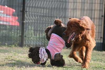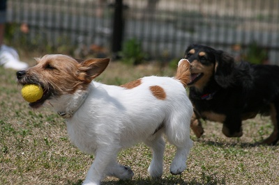 昨日だったらジャックラッセルのパピーちゃん同士遊べてたかもしれないですね