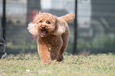 れん君、あそぼーっと駆け寄ってます