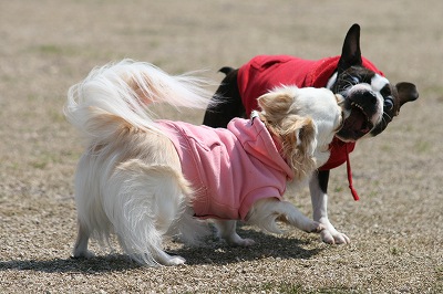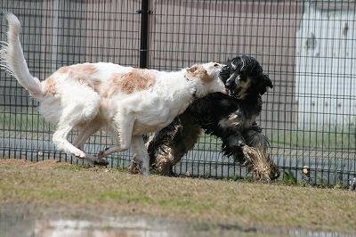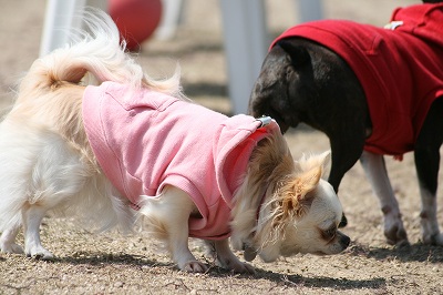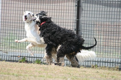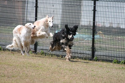 午後になると雨が降ったり止んだりで小型犬エリアの水がはけてきました
