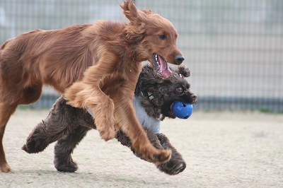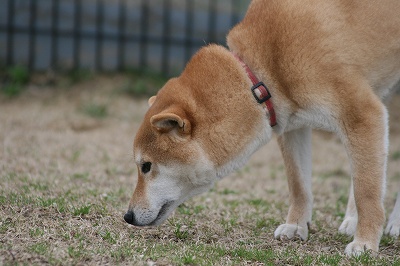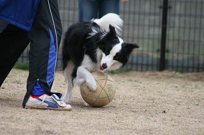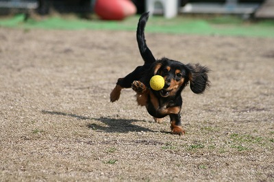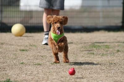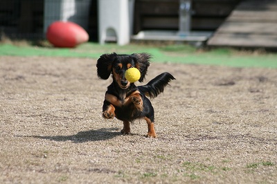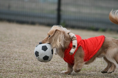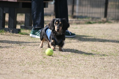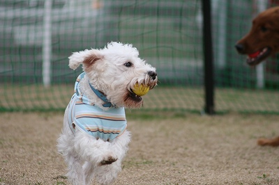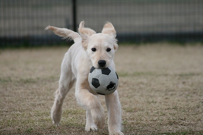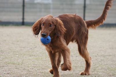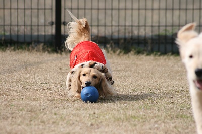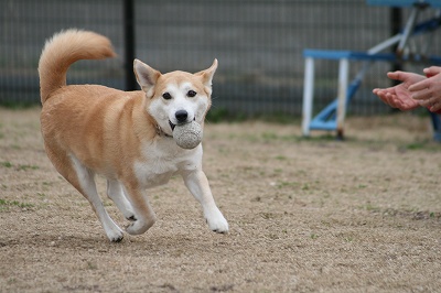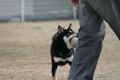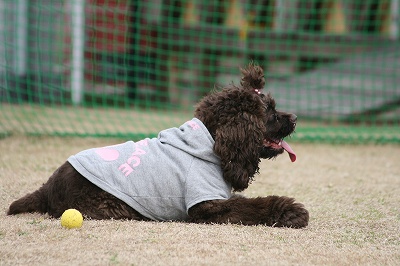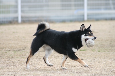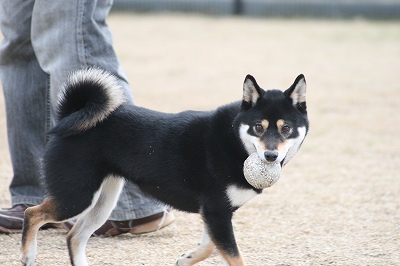 みんなが帰った後、ごろうちゃん、ボールをくわえて