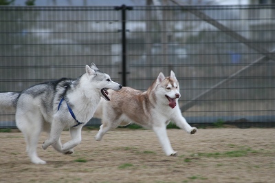 ごろうちゃんとねね、二人っきりだとよく走りますよ