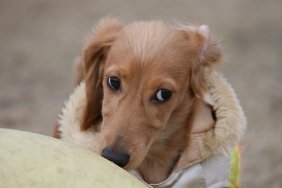 あんずちゃん、ホフク前進で低姿勢なコンニチハーです